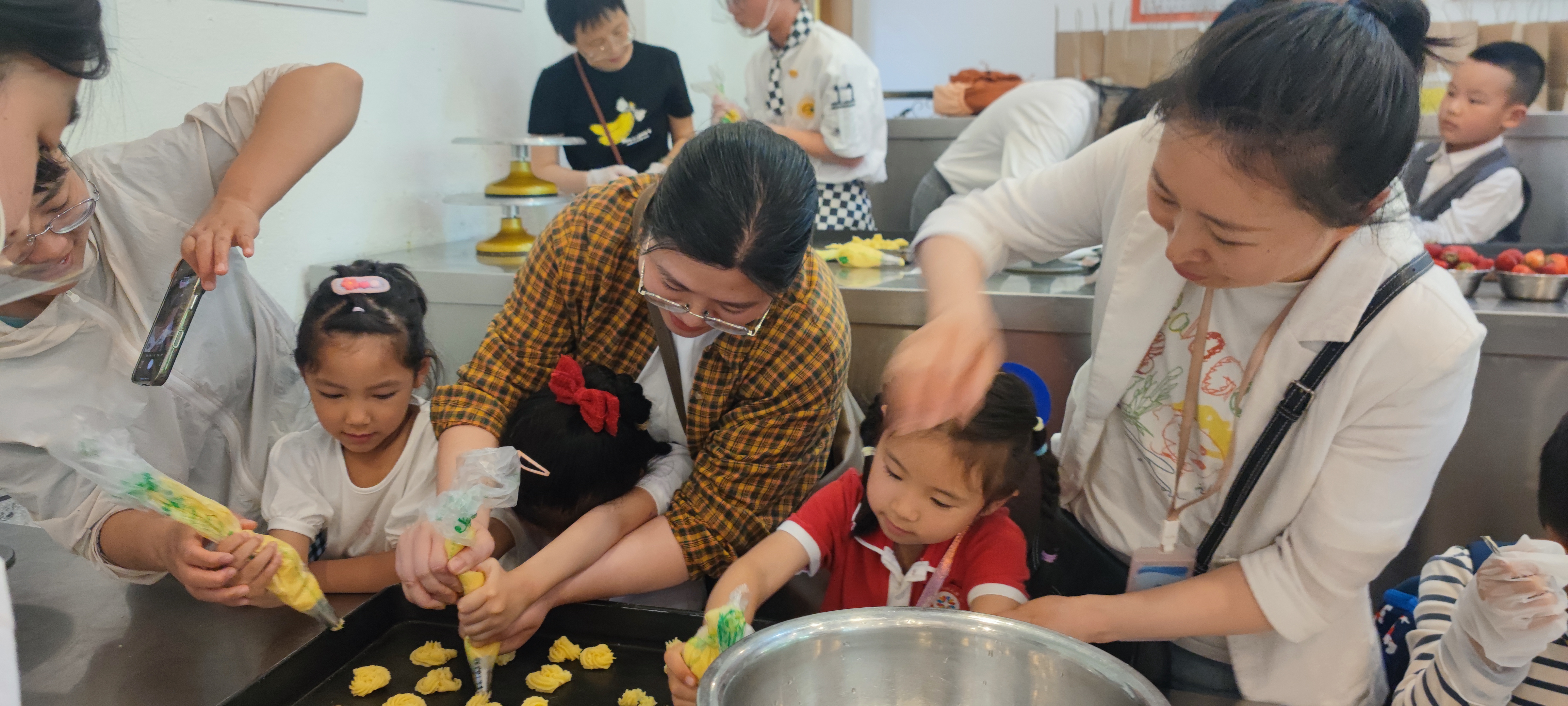 90余位教职工携子女、母亲以家庭为单位了参加此次的亲子烘焙乐活动。各组家庭在专业烘焙师指导下共同制作甜点,亲子间默契配合,在托盘里挤出一朵朵花儿一般的曲奇,你抹奶油,我点缀水果,共同雕琢一份精美的蛋糕,温暖亲情在指尖流淌,留下一帧帧温馨、甜美的画面,活动现场欢声笑语不断,留下了难忘的回忆。